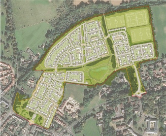Proposal: Erection of 418 dwellings, associated parking, landscaping, open space, formal sports pitch provision and diversion of PROW, along with vehicle and pedestrian access from Kingshill Road and Amersham Road (A404).